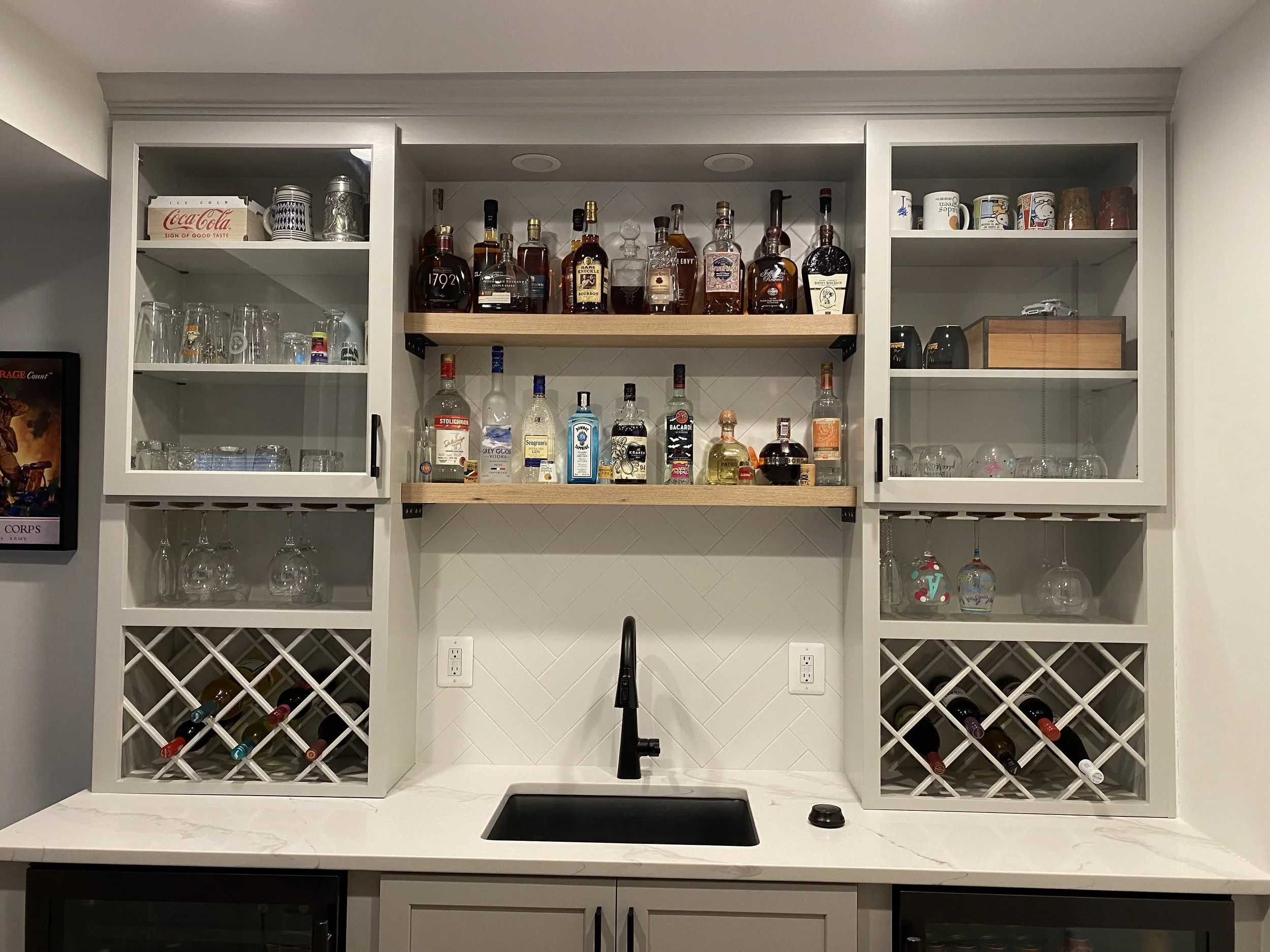 Our Work Custom Kitchen Island Custom Tool Cart Vintage Bourbon Display Case Walnut & Cherry Bar Cabinet Pantry Office Built-Ins Closet 1 Closet 2 Closet 3 Mud Room Bar Table Humidor